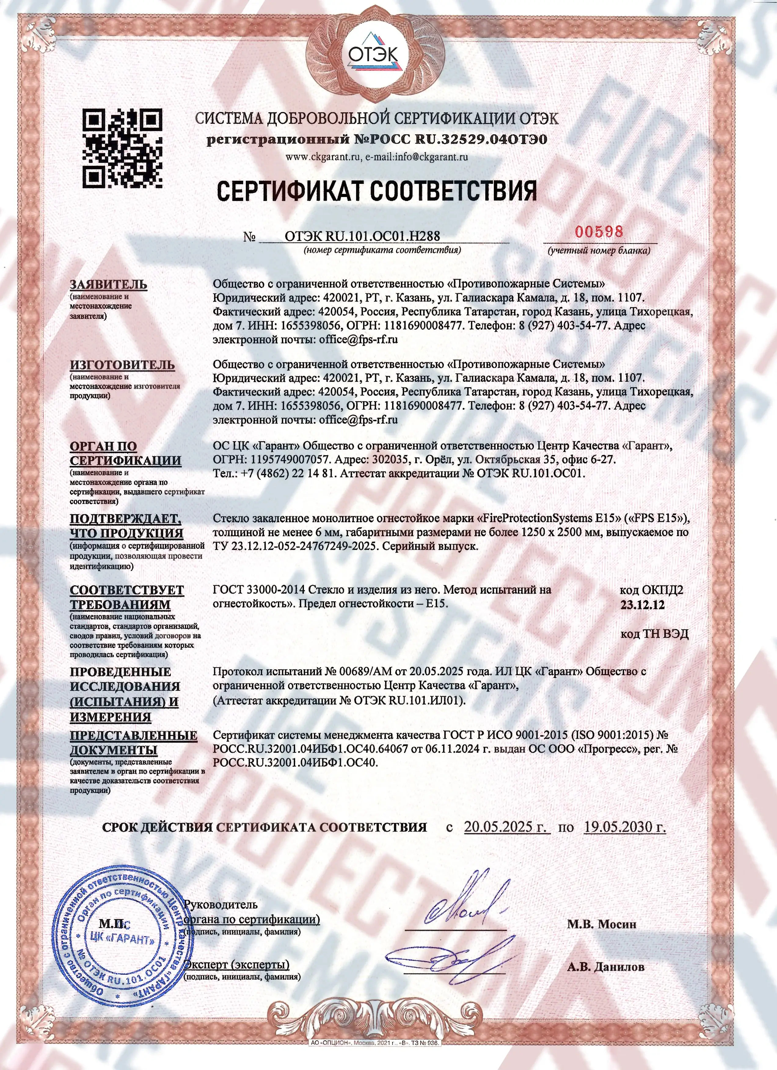 Сертифицировано по ГОСТ Р 53305-2009 и ISO 9001. Легко проходит экспертизу. Противопожарные конструкции: стекло, двери, перегородки, витражи – с гарантией до 5 лет. Компания «Fire Protection Systems» известна своим индивидуальным подходом к каждому клиенту, предлагая оперативную доставку, качественный монтаж и техническое обслуживание. Для заказа можно воспользоваться официальным сайтом, позвонить по номеру телефона 8 800 222 99 40 или отправить письмо на электронную почту office@fps-rf.ru.
